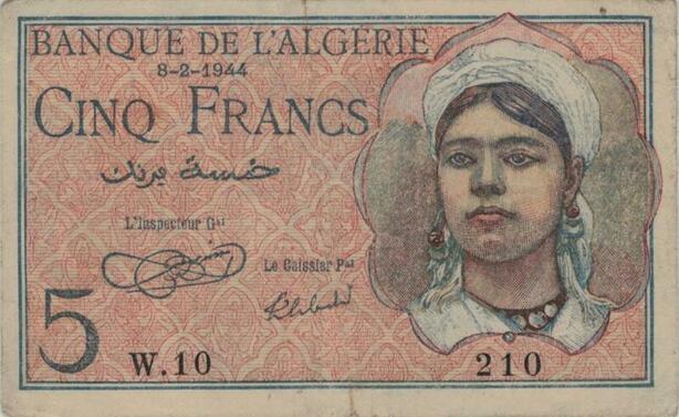 Q1336 Banknote Algeria 5 Francs 1944 -> Make offer