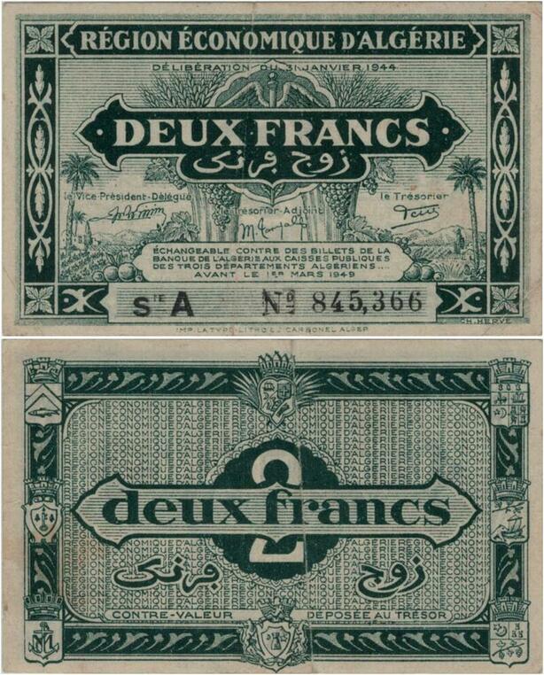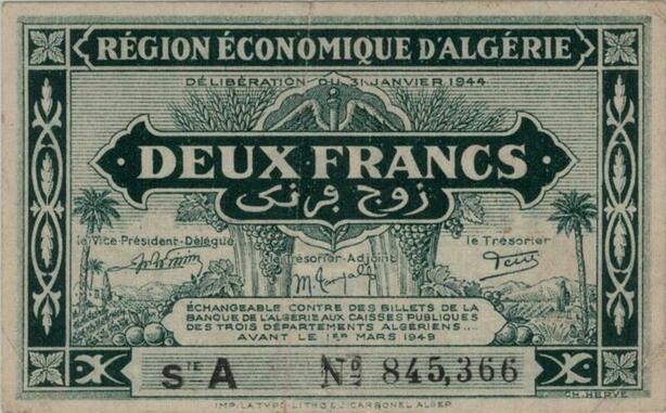 Q1337 Banknote Algeria 2 Francs 1949 -> Make offer