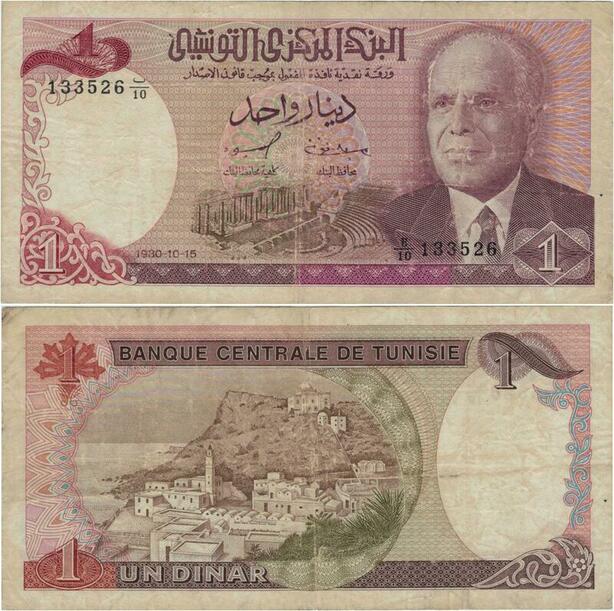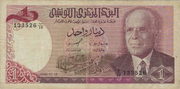 Q1342 Banknote Tunisia 1 Dinar Habib Bourguiba 1980 -> Make offer