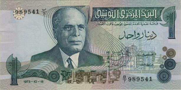 Q1345 Banknote Tunisia 1 Dinar Habib Bourguiba 1973 UNC -> Make offer