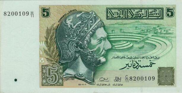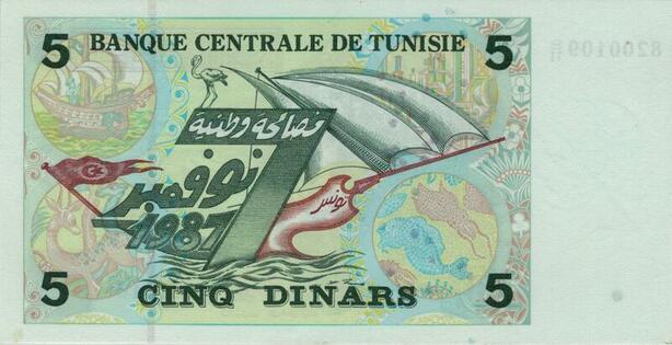 Q1346 Banknote Tunisia 5 Dinars 1987 UNC -> Make offer