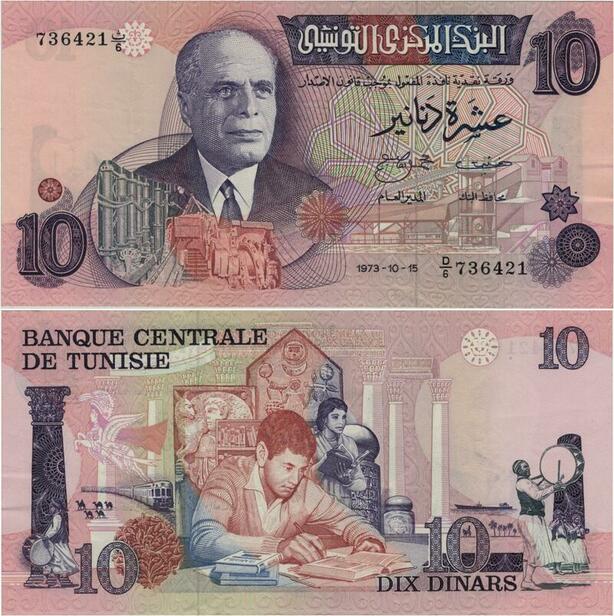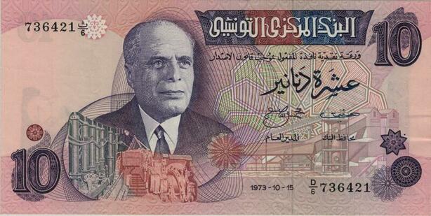 Q1352 Rare Banknote Tunisia 10 Dinars Habib Bourguiba 1973 UNC -> Make offer
