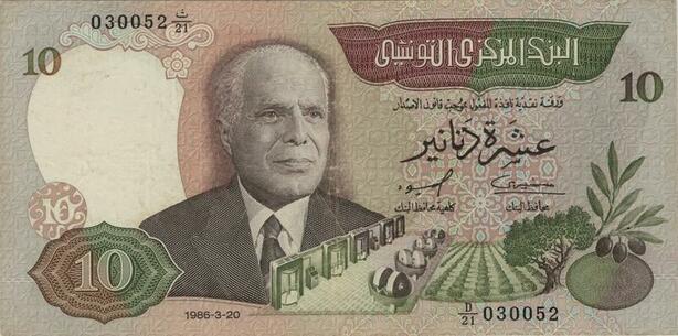 Q1353 Banknote Tunisia 10 Dinars Habib Bourguiba 1986 AU+ -> Make offer