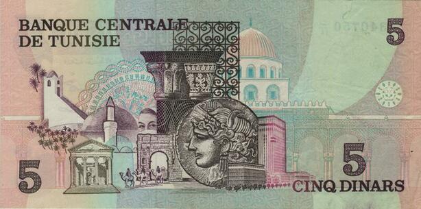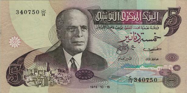 Q1355 Banknote Tunisia 5 Dinars Habib Bourguiba 1973 -> Make offer