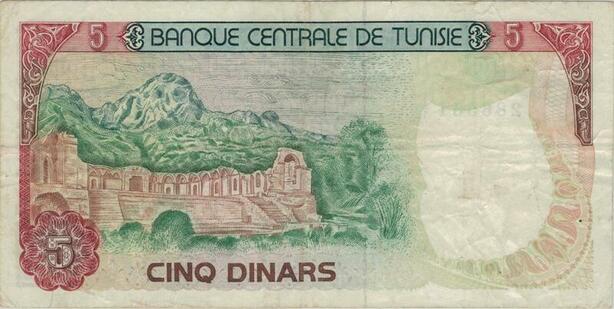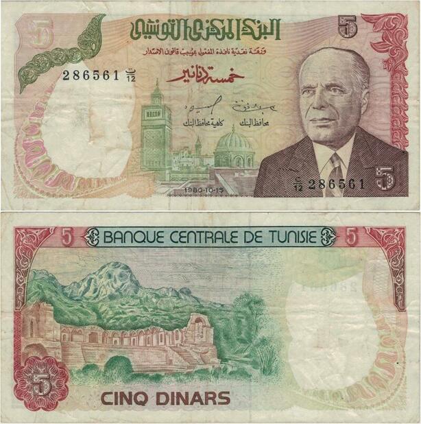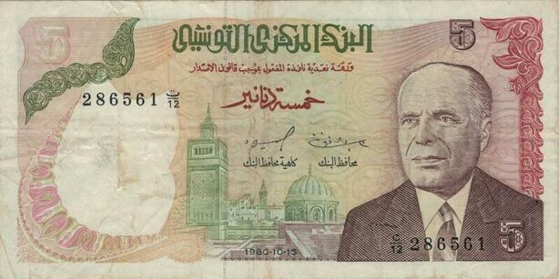 Q1356 Banknote Tunisia 5 Dinars Habib Bourguiba 1980 -> Make offer