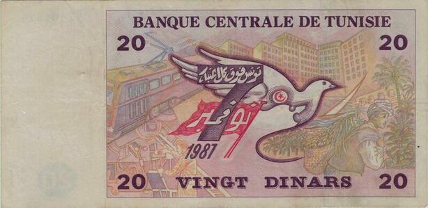 Q1360 Banknote Tunisia 20 Dinars 1992 -> Make offer