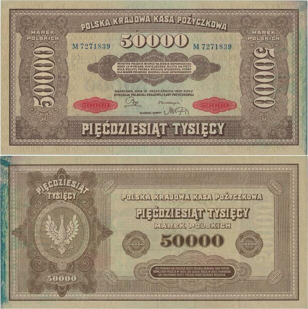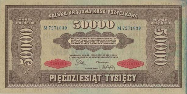 Q1369 Banknote Poland 50000 Zlotych 1922 AU -> Make offer