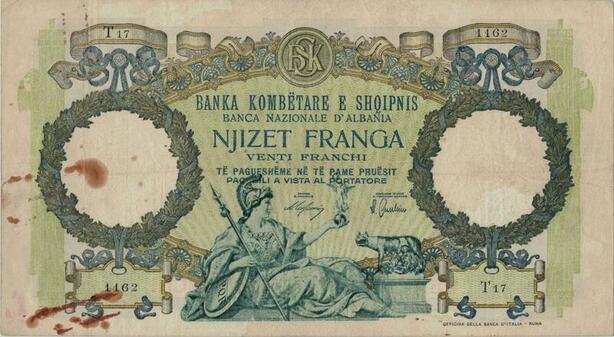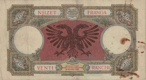 Q1375 Banknote Albania 20 Frangas Roma 1939 -> Make offer