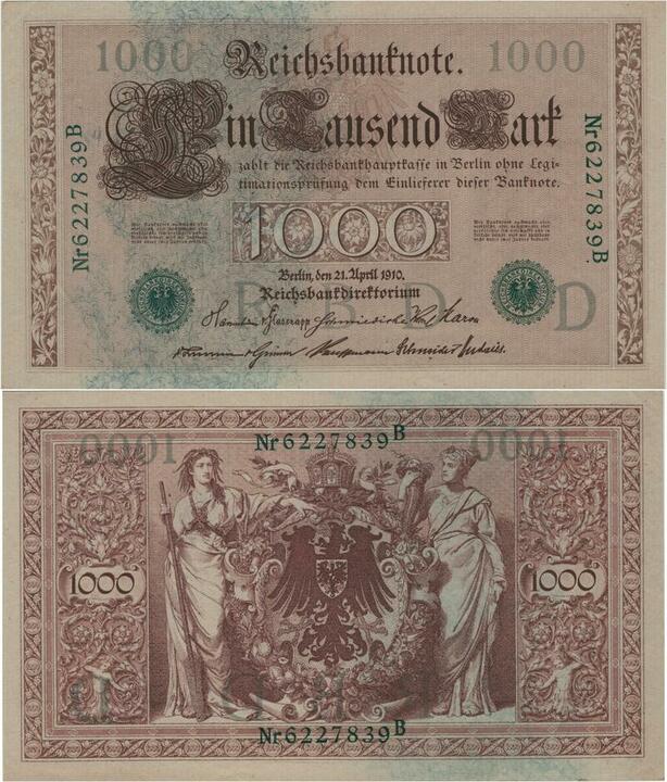 Q1386 Banknote Germany 1000 Marks 1910 UNC -> Make offer