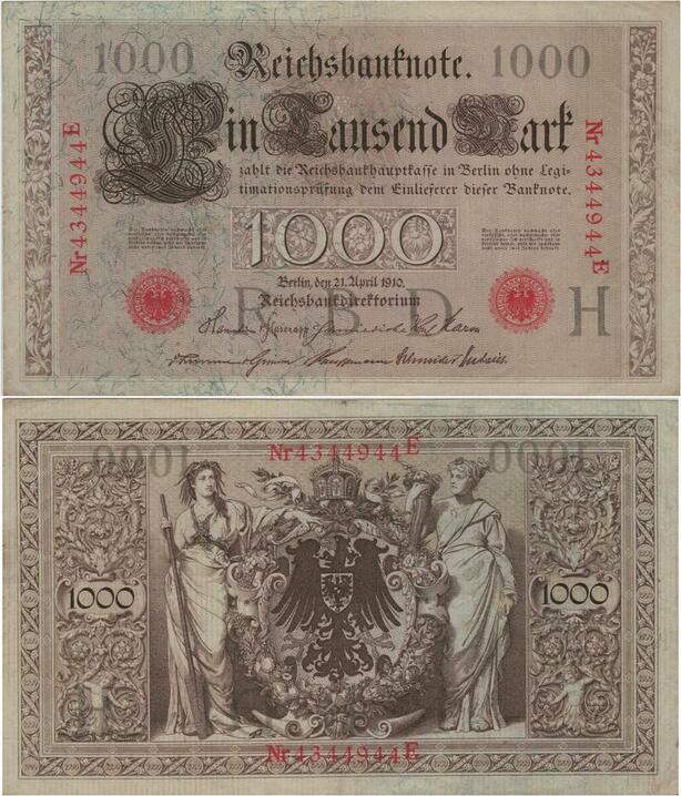 Q1389 Banknote Germany 1000 Marks 1910 UNC -> Make offer