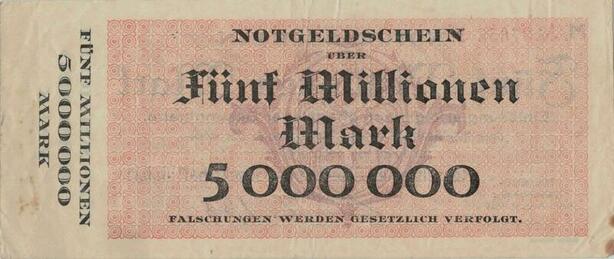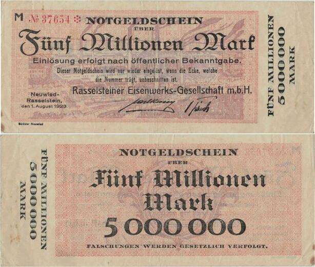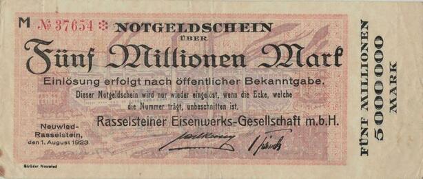 Q1399 Banknote Germany Notgeldschein Rasselstein 5 Millionen Marks 1923