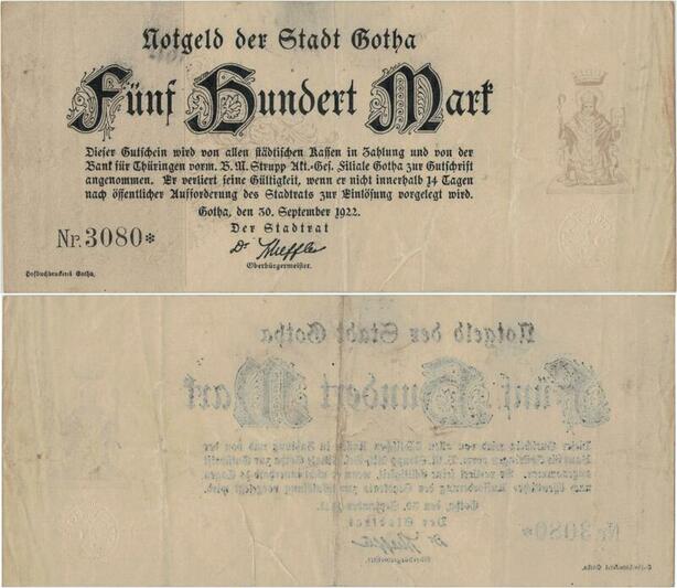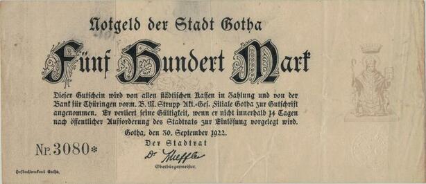Q1405 Banknote Germany Gotha 500 Marks 1922 -> Make offer