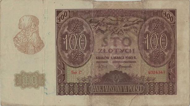 Q1414 Banknote Poland 100 Zlotych 1940 -> Make offer