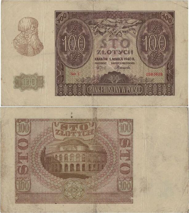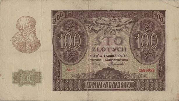 Q1415 Banknote Poland 100 Zlotych 1940 -> Make offer
