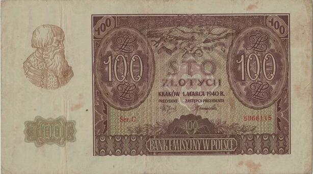 Q1416 Banknote Poland 100 Zlotych 1940 -> Make offer
