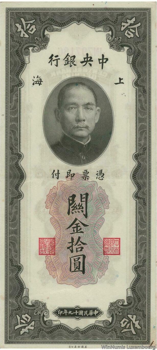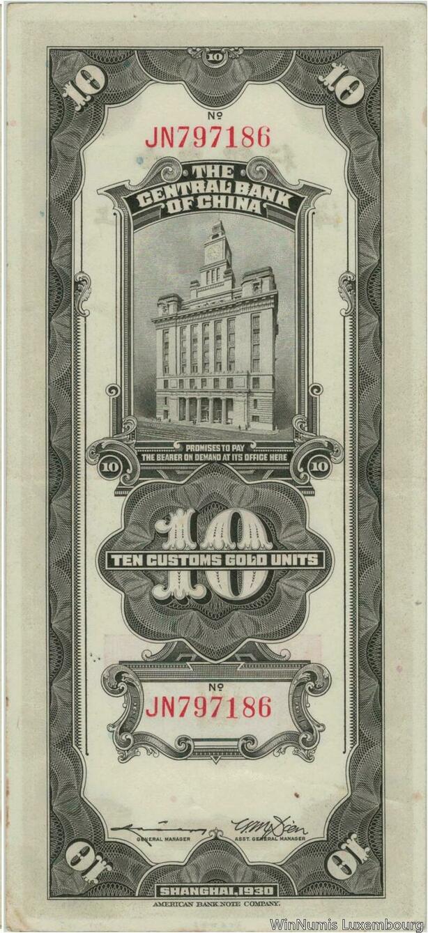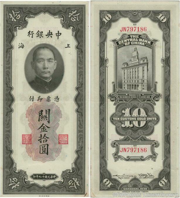 Q1433 Banknote China 10 Customs Gold Units Shangai 1930 AU -> Make offer