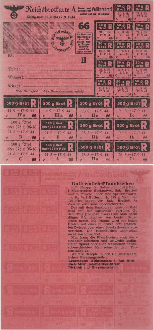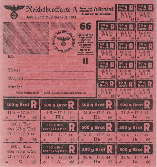 Q1441 Rare Luxembourg Reichsbrotkarte A Ration Ticket Brot WWII 1944 UNC
