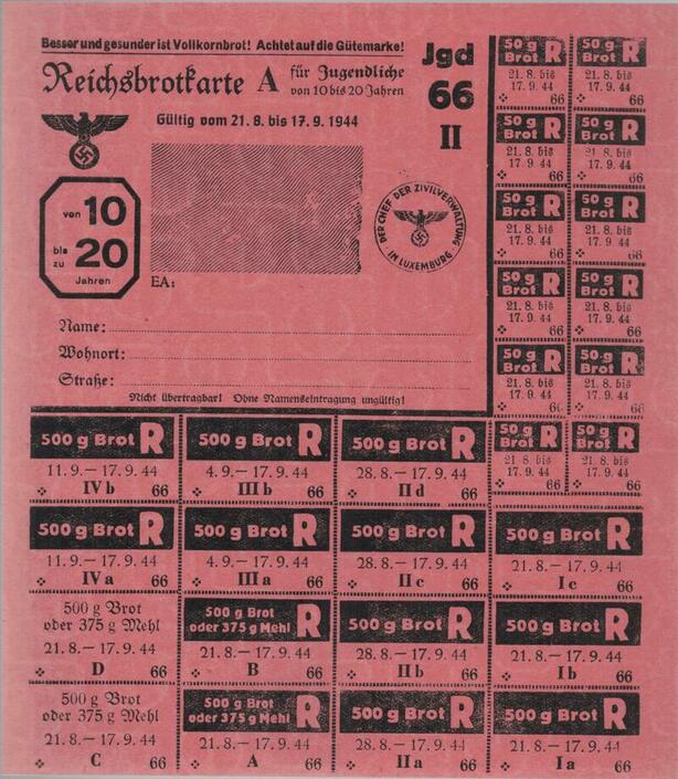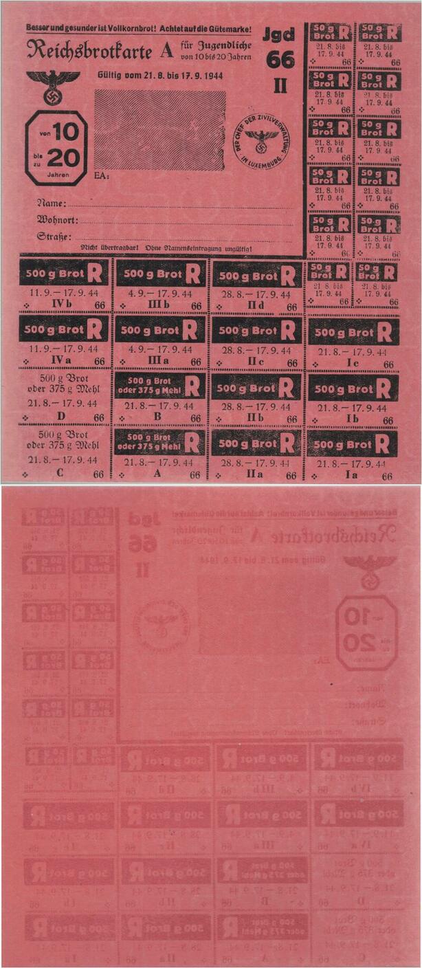 Q1442 Rare Luxembourg Reichsbrotkarte A Ration Ticket Brot WWII 1944 UNC