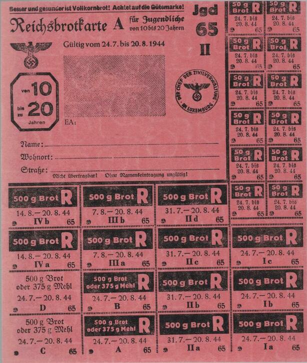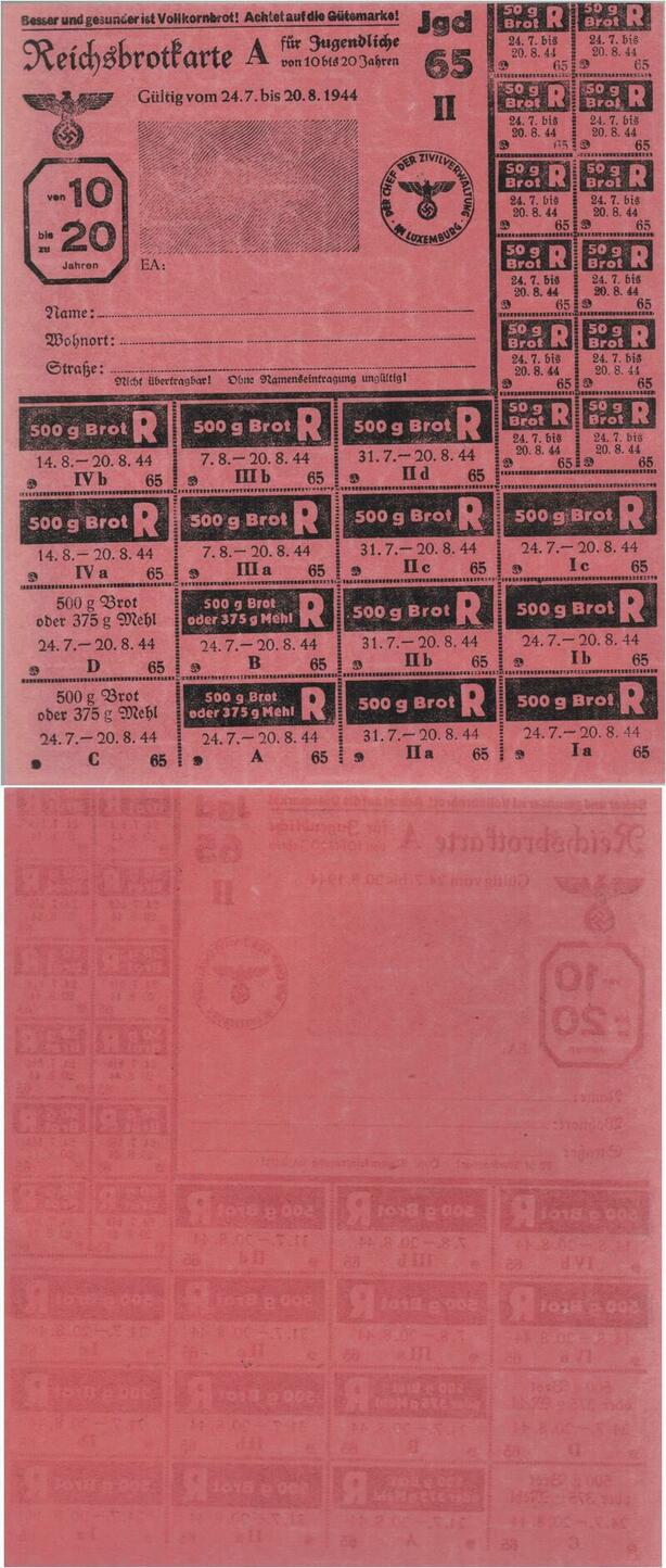 Q1443 Rare Luxembourg Reichsbrotkarte A Ration Ticket Brot WWII 1944 UNC