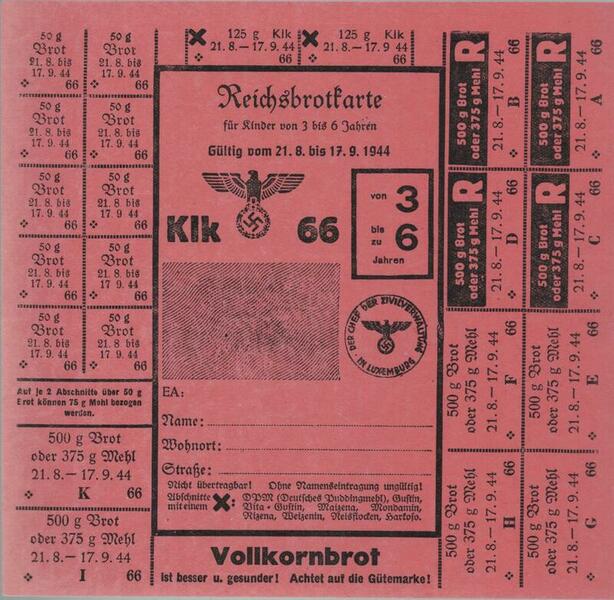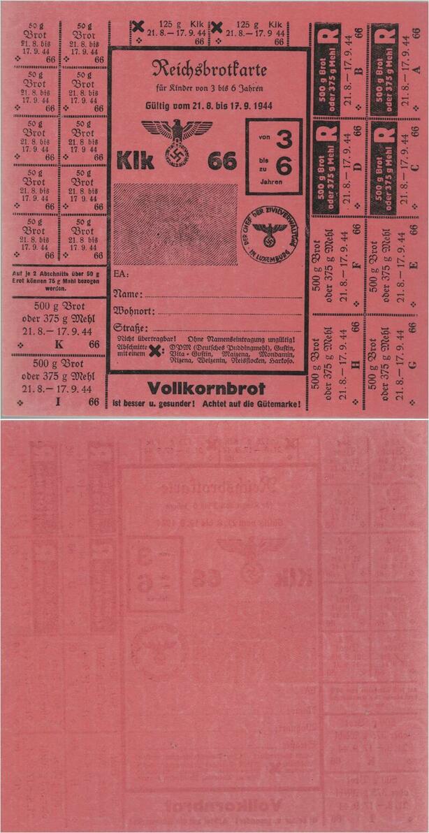 Q1445 Rare Luxembourg Reichsbrotkarte Ration Ticket Brot WWII 1944 UNC
