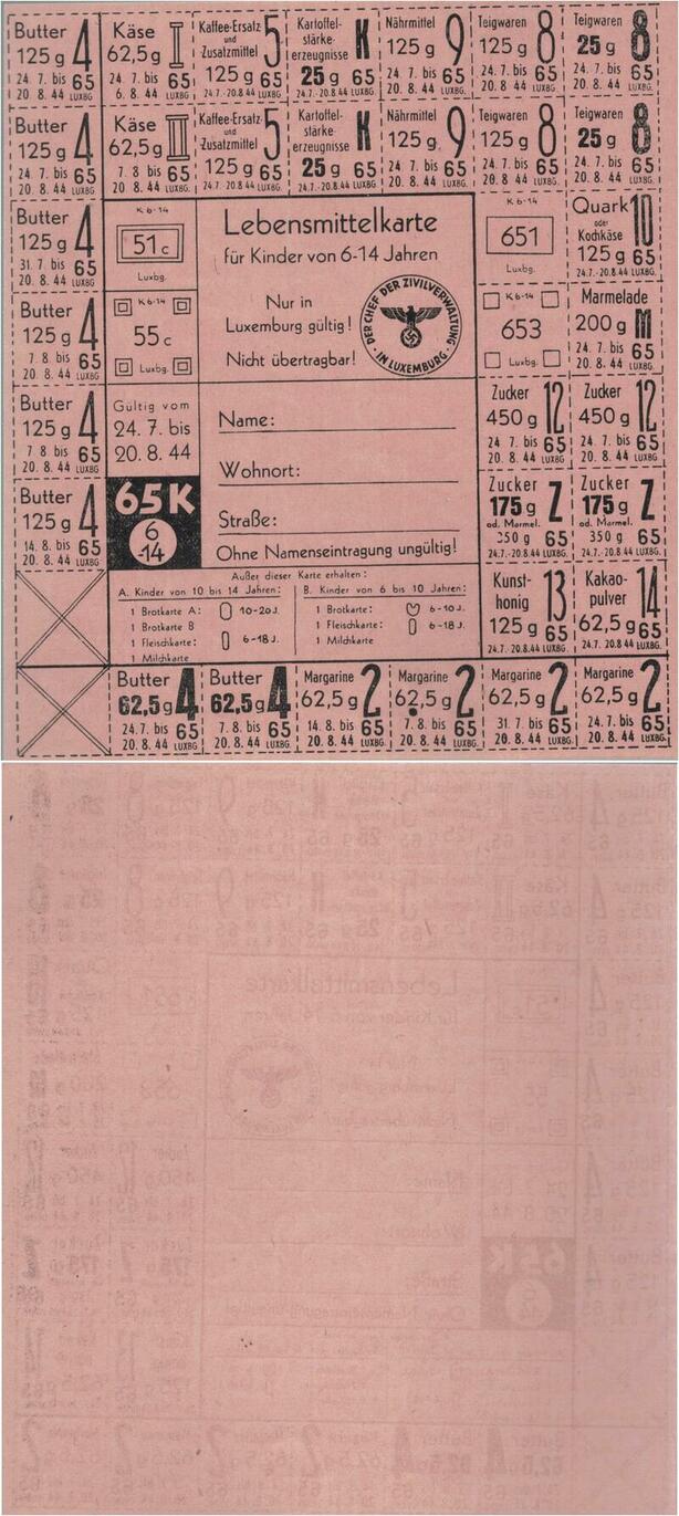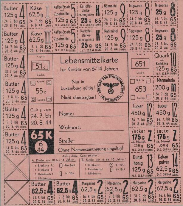 Q1446 Rare Luxembourg Ration Ticket Zucker Butter Quark Kakao Käse 1944