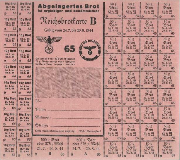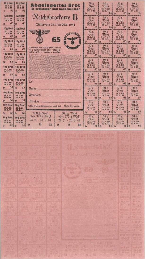Q1449 Rare Luxembourg Reichsbrotkarte B Ration Ticket Brot WWII 1944 UNC