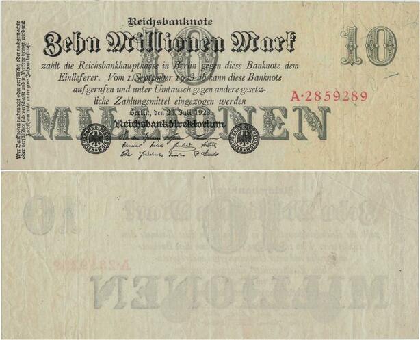 Q1459 Banknote Germany Weimar 10 Millionen Reichmarks 1923