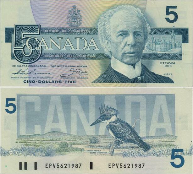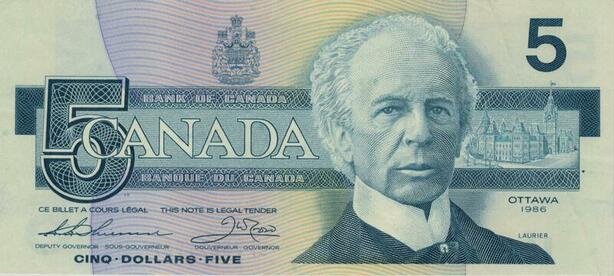 Q1487 Banknote Canada 5 Dollars Henry Charles Wilfrid Laurier 1986 UNC