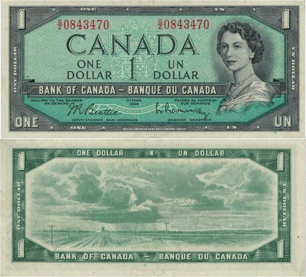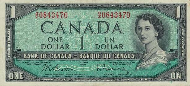 Q1491 Banknote Canada 1 Dollar Elizabeth II 1954 AU -> Make offer