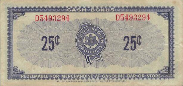 Q1492 Banknote Canada 25 Cash Bonus Scotsman Mc Tire 1958 -> Make offer