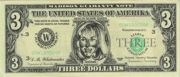 Q1501 Banknote USA 3 Dollars Hillary Clinton White House 1995 UNC -> M offer