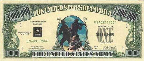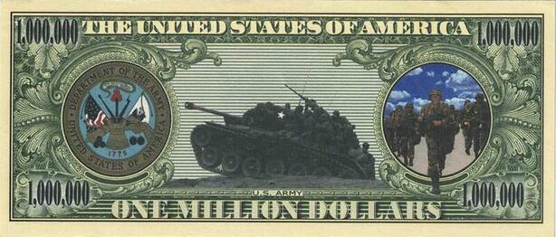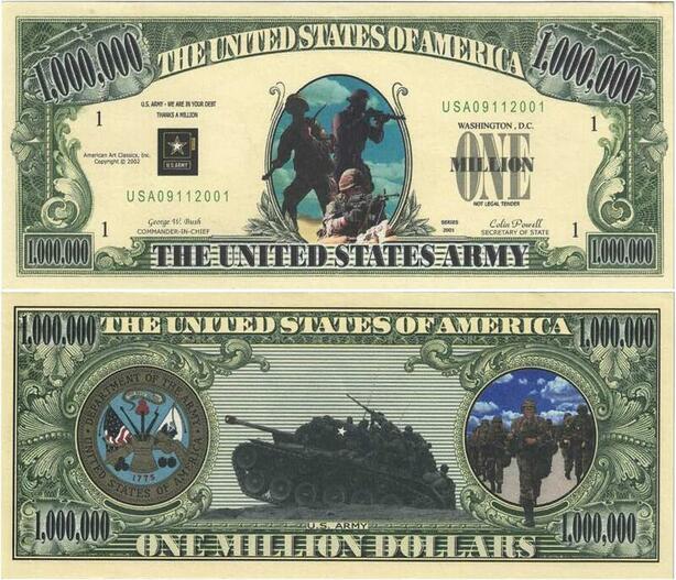 Q1502 Banknote USA 1 Milion Dollars US Army Irak War Bush Powell 2001 UNC