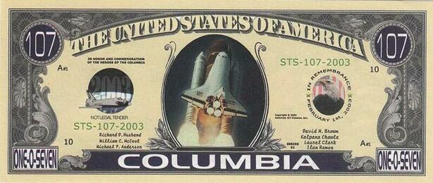 Q1503 Banknote USA NASA Columbia Space Shuttle 2003 UNC -> Make offer