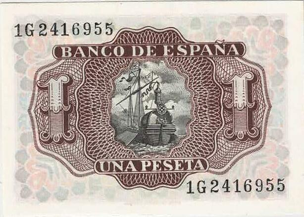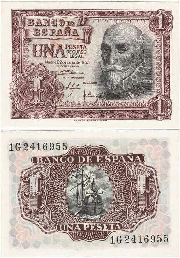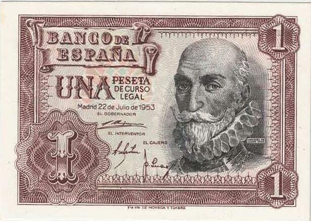 Q1823 Banknote Spain 1 Peseta Álvaro de Bazán 1953 UNC -> Make offer