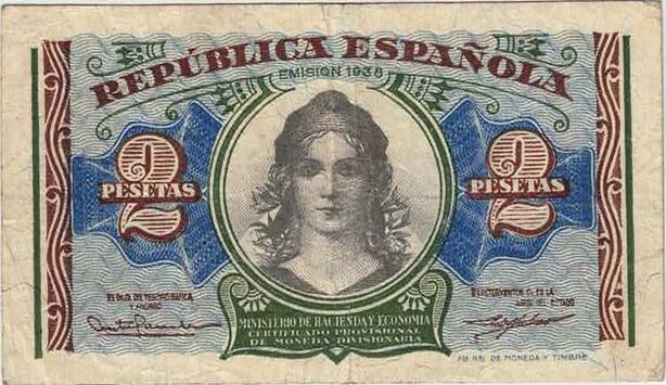 Q1826 Banknote Spain 2 Pesetas 1938 Banco de Espana -> Make offer