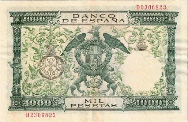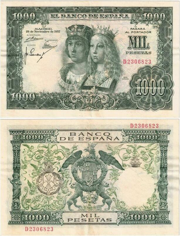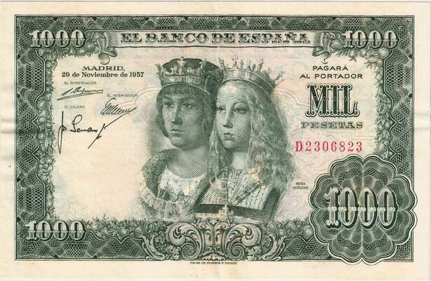 Q1830 Banknote Spain 1000 Pesetas The Catholic Monarchs 1957 AU -> M offer