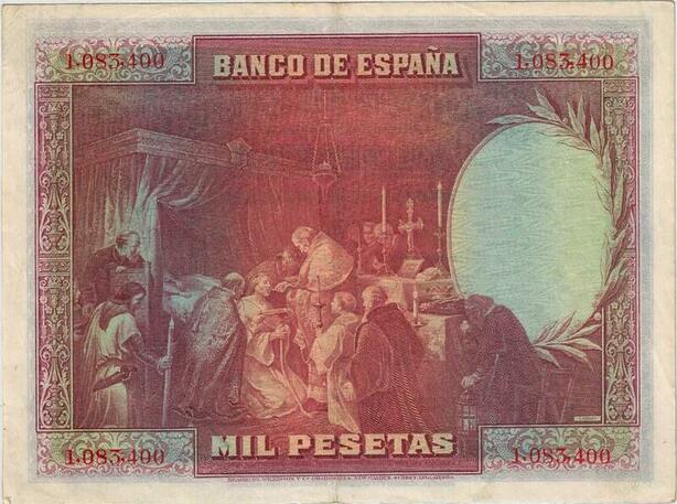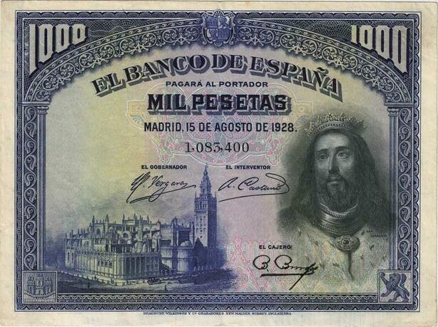 Q1834 Banknote Spain 1000 Pesetas Ferdinand III of Castile 1928 AU