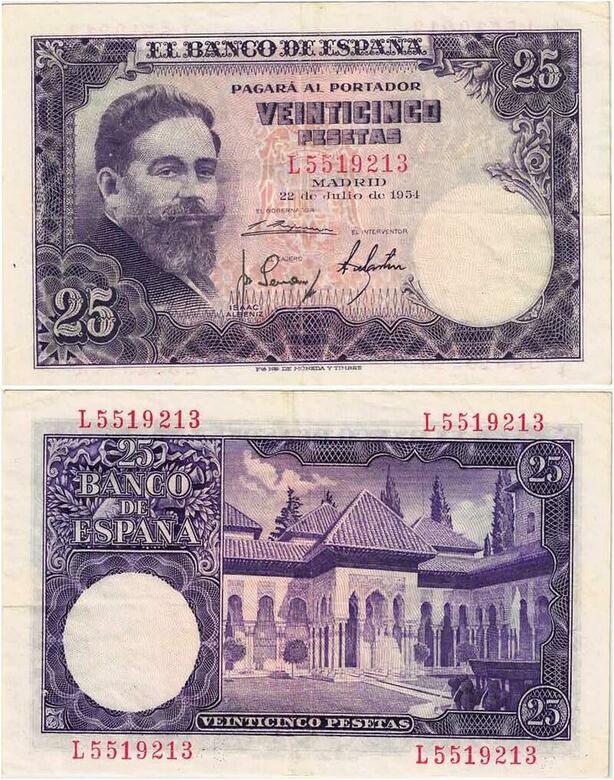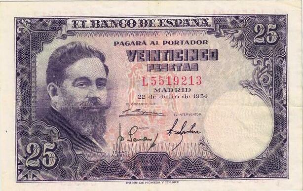 Q1836 Banknote Spain 25 Pesetas Isaac Albéniz 1954 -> Make offer