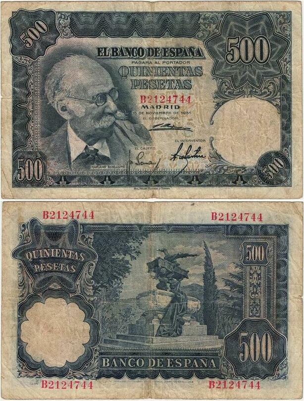 Q1841 Banknote Spain 500 Pesetas Mariano Benlliure 1951 -> Make offer