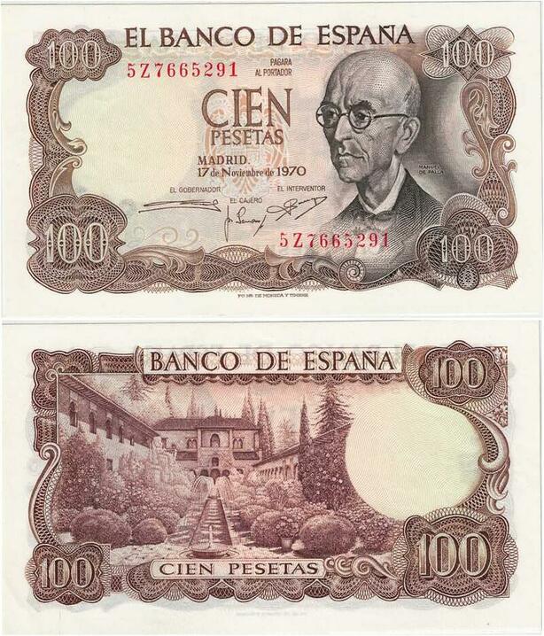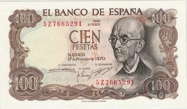 Q1844 Banknote Spain 100 Pesetas Manuel de Falla 1970 UNc -> Make offer