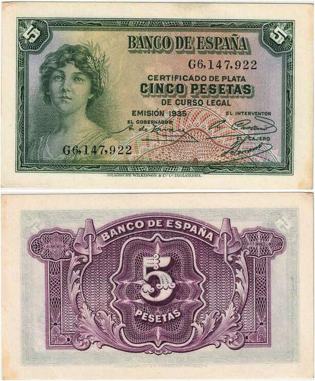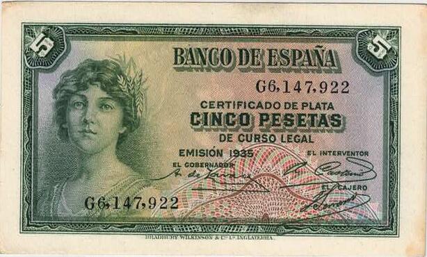 Q1847 Banknote Spain 5 Pesetas 1935 AU+ -> Make offer