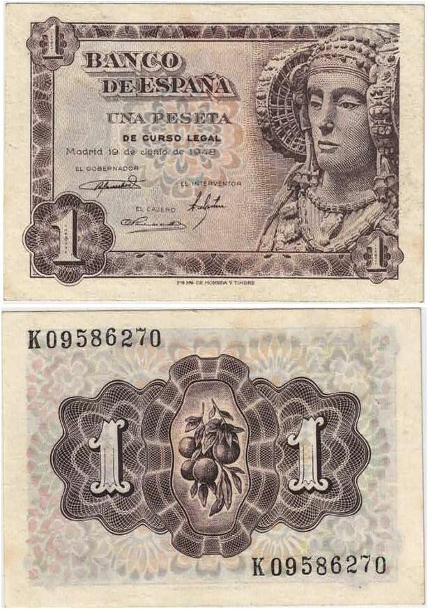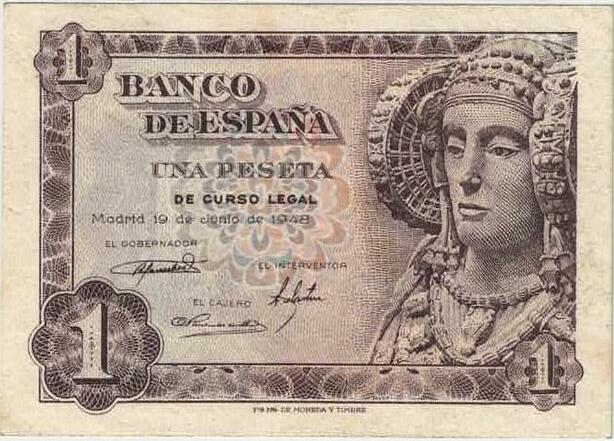 Q1850 Banknote Spain 1 Peseta Dame of Elche 1948 -> Make offer