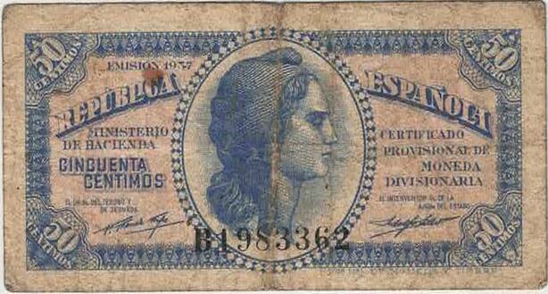 Q1855 Banknote Spain 50 Centimos 1937 -> Make offer