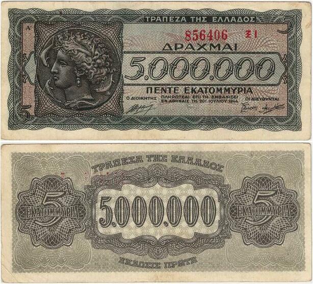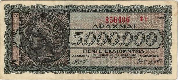 Q1858 Banknote Greece 5 Millions Drachmai 1944 -> Make offer