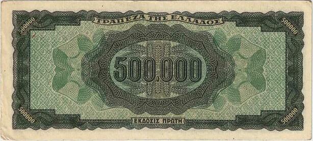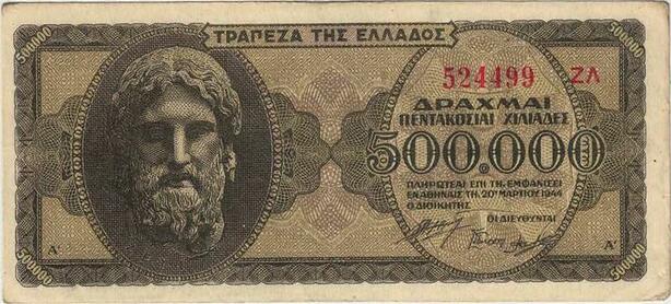 Q1877 Banknote Greece 500,000 Drachmai Zeus 1944 -> Make offer