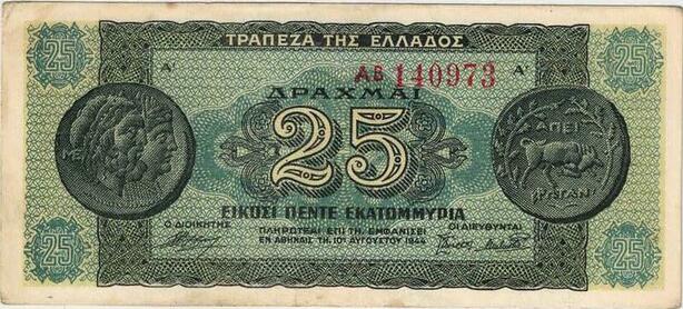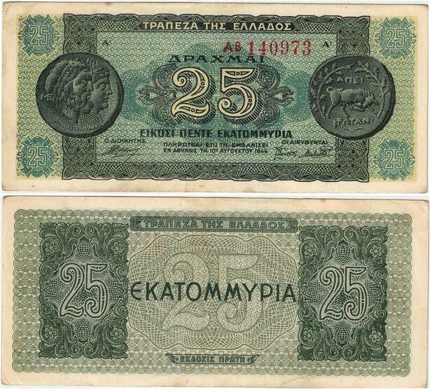 Q1880 Banknote Greece 25 Millions Drachmai 1944 -> Make offer