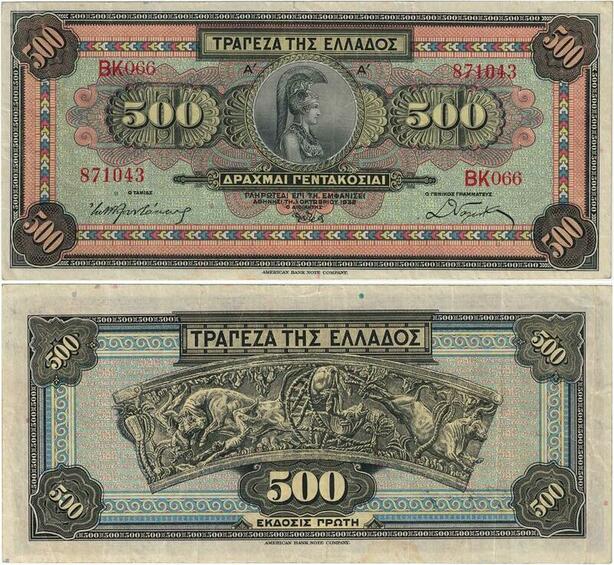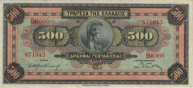 Q1884 Banknote Greece 500 Drachmai Athena Hellas 1932 -> Make offer