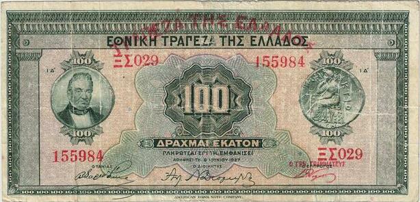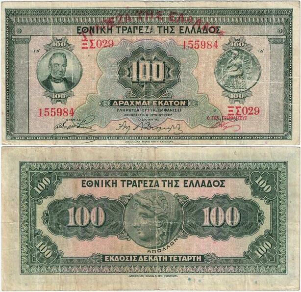 Q1885 Banknote Greece 100 Drachmai Georgios Stavros 1927 -> Make offer