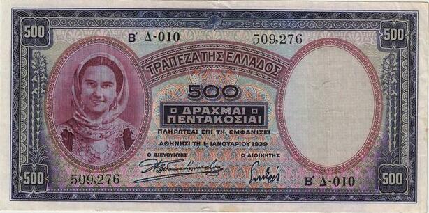 Q1886 Banknote Greece 500 Drachmai 1939 -> Make offer