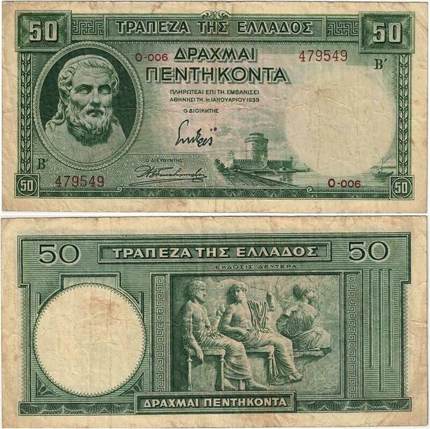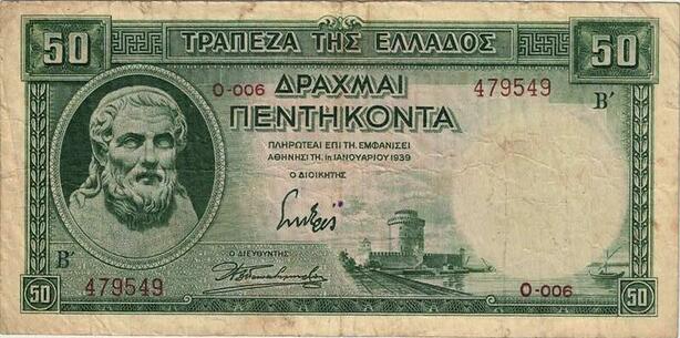Q1889 Banknote Greece 50 Drachmai Hesiod 1939 -> Make offer